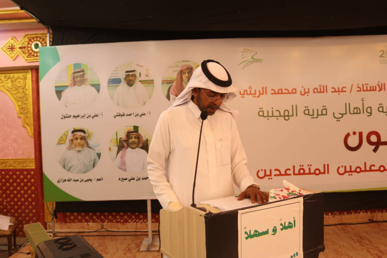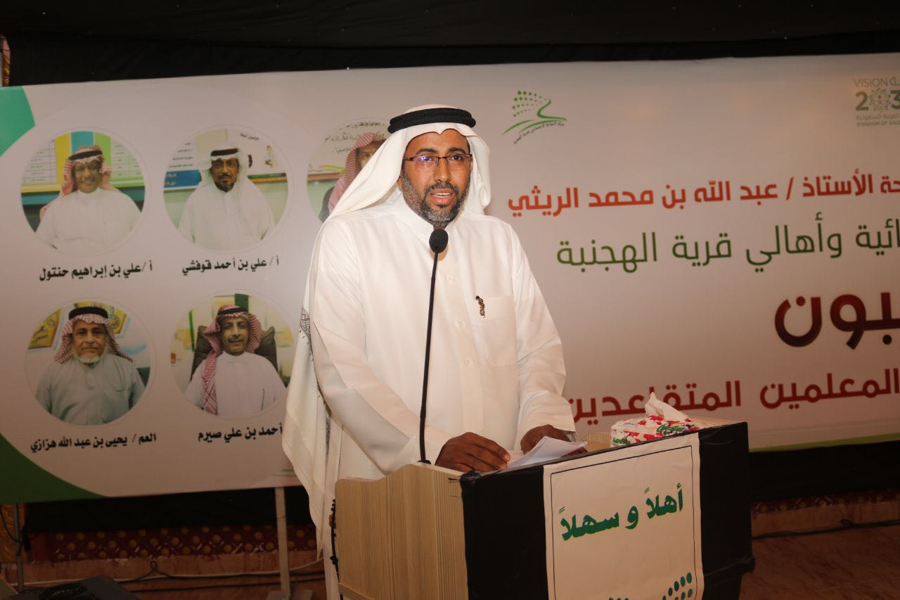 وألقى مدير مكتب التعليم بالمسارحة والحرث الأستاذ علي بن محمد عواف كلمة أكد من خلالها على الجهد الذي قدمه المتقاعدون خلال فترة عملهم خدمة للدين والوطن مقدمًا شكره وشكر المجتمع التربوي لهم .