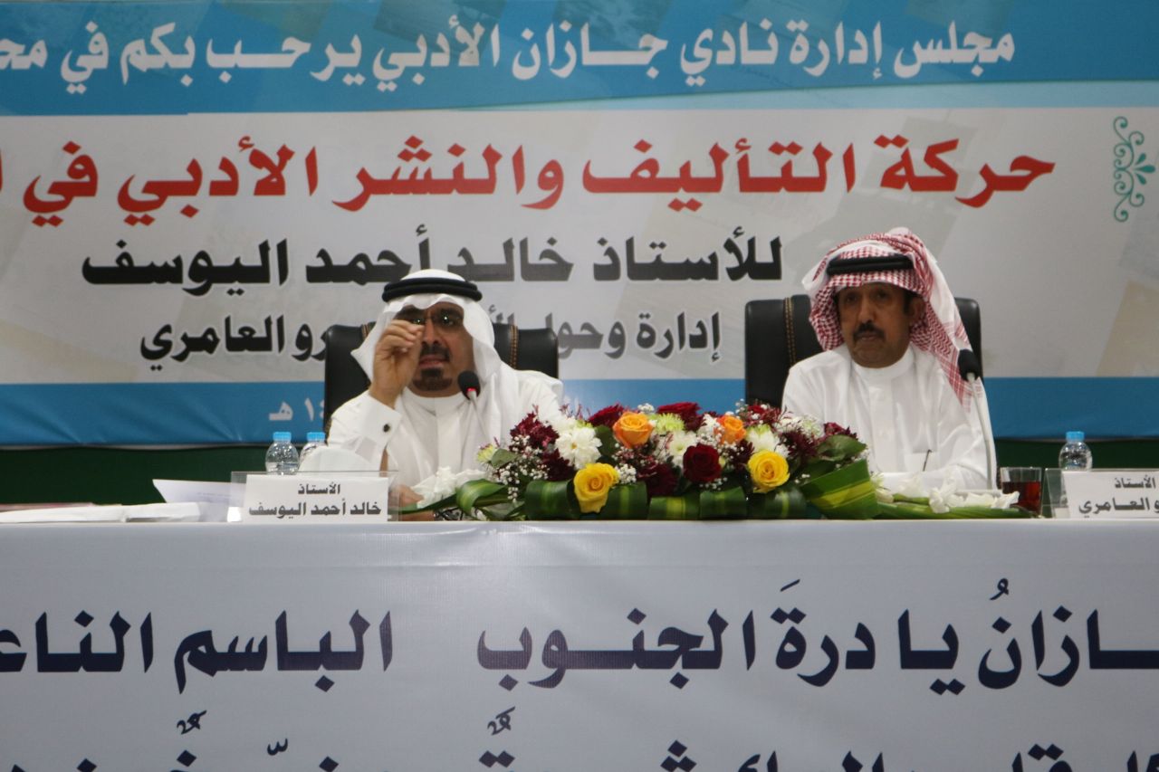 أقام نادي جازان الأدبي “مساء أمس الخميس 1439/6/13هـ في قاعة الإثنينية في النادي” محاضرة ثقافية بعنوان”حركة التأليف والنشر الأدبي في المملكة العربية السعودية” ضمن الموسم الثقافي الحالي للنادي ، قدمها الأستاذ خالد أحمد اليوسف-، وأدا الحوار الأستاذ عمرو العامري