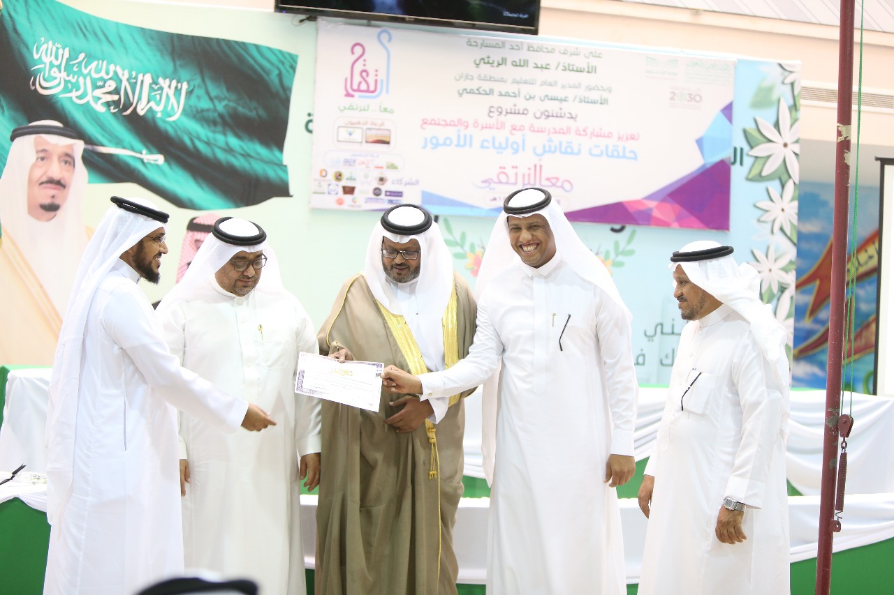 جاء ذلك خلال البرنامج الذي نفذته وحدة شراكة المدرسة مع الأسرة والمجتمع ” ارتقاء ” بتعليم جازان وعقد من خلاله حلقات نقاش لأولياء الأمور بالتعاون مع أكاديمية التدريب النوعي من خلال شركة تطوير للخدمات التعليمية .