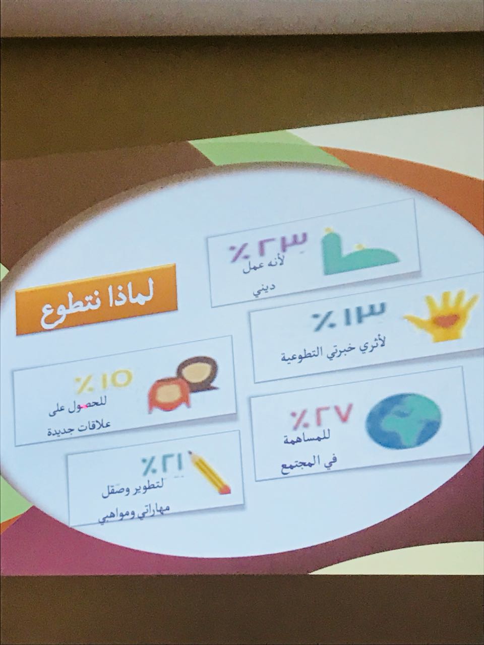 مستدلة بعدد من النماذج الحية والأمثلة التي تحاكي العمل التطوعي كما تحدث عن معوقات العمل التطوعي وكيفية العمل على حلها وكذلك مجالات العمل التطوعي .