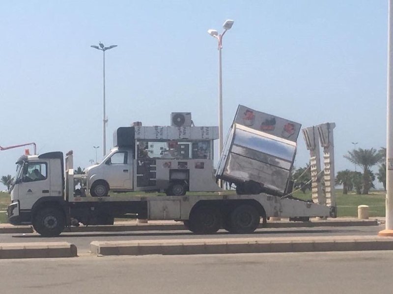 تواصلت تطورات وعمليات سحب عربات “الفود ترك” التي يملكها عدد من الشباب الرياديين من قبل أمانة جازان والتي كانت تقف بالواجهة البحرية بالكورنيش الشمالي الأسبوع الماضي.