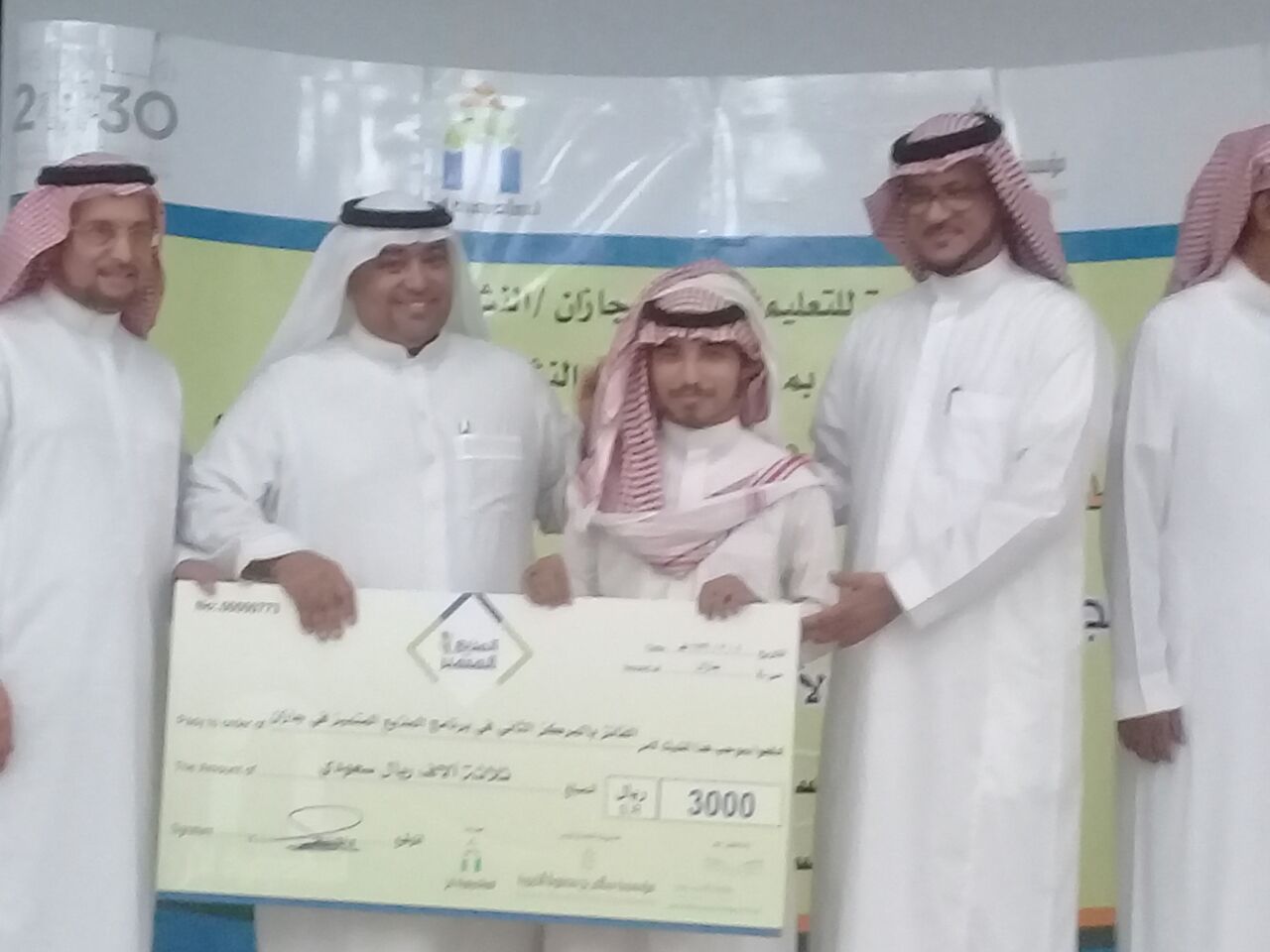 وتقديراً لجهود الطلاب فقد كرم الأستاذ ياسر دويري مساعد مدير التعليم للشؤون التعليمية الطالب عمار سهلي بهذه المناسبة الرائعة وحصل على المركز الثاني وجائزة التميز وهي مبلغ ثلاثَةُ آلافِ ريال تقديراً وتشجيعاً له لبذل المزيد من العطاء متمنين للطالب عمار مزيداً من التقدم والنجاح.