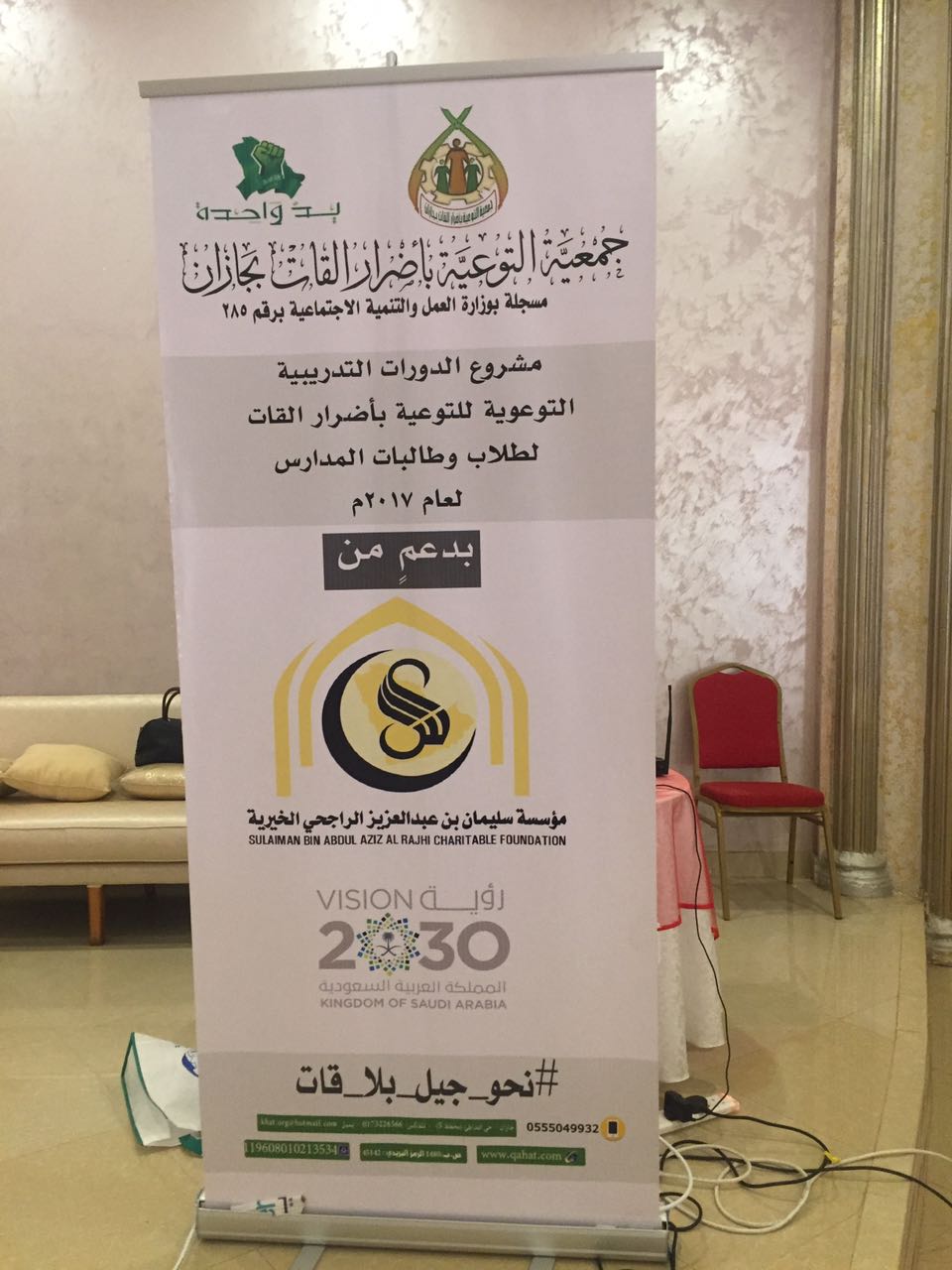 وسط حضور اكثر من ٧٠ طالبة؛ أقامت جمعية التوعية بأضرار القات “أمل” دورة تدريبية بعنوان (أنا أستطيع) وذلك صباح الخميس 1439/7/5 في قاعة لياليزا في محافظة أحد المسارحة ، وتأتي هذه الدورة ضمن الأنشطة والفعاليات التي تستهدف التوعية بأضرار تعاطي القات وبدعم كريم وغير مستغرب من مؤسسة سليمان بن عبدالعزيز الراجحي.