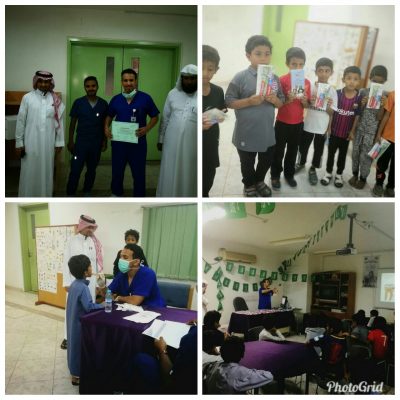 بدأها برنامج صحة الفم والأسنان نفذه طبيب الأسنان د. رائد حكمي وطبيب الأسنان د. خالد عقيلي وبحضور الطلاب والمرشد الطلابي بالمرحلة الابتدائية / يحي جبران مغفوري والمرشد الطلابي بالمرحلة المتوسطة / محمد مقبول حكمي وأمين المصادر / حسين ظافر حكمي . وبإشراف المرشد الصحي بالمدرسة / علي عبدالله حكمي