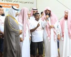 وكان في استقباله لدى وصوله مخيم افطار الصائمين مفتي منطقة جازان الشيخ محمد بن شامي شيبة والشيخ أحمد بن محمد مشلوي رئيس المكتب التعاوني بالمحافظة ومدراء الدوائر الحكومية.