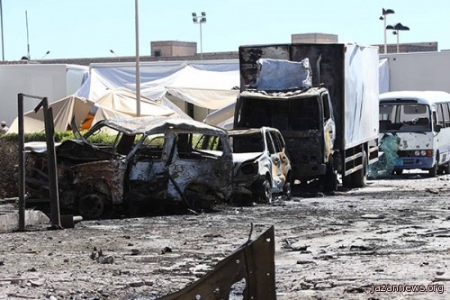 · تحطم معظم النوافذ التابعة لجميع المباني في مجمع وزارة الدفاع العرضي وكذلك المباني المحيطة بالمجمع الخاصة بالمواطنين.