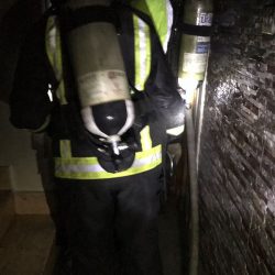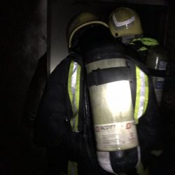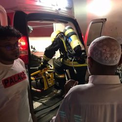 وقد تعاملت الفرقة مع الموقف بكل احترافية، واقتحمت النيران بكامل تجهيزات الوقاية الفردية وكمامات التنفس، واستخدمت المعدات، وتمكّنت من طرد الدخان لخارج المبنى.