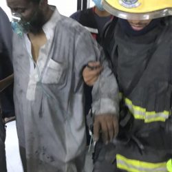واستطاع أفراد الدفاع المدني الوصول إلى المحتجزين الذين كانوا في غرفة مغلقة، وهم أربعة أطفال كانوا داخل خزانة ملابس، وأمهم ورب الأسرة معهم بالغرفة.