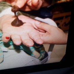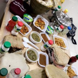 قامت المشاركت  بتجهيز الحناء لنزيلات ثم قمن بنا الأيادي والارجل وكانوا سعيدات بذلك ….وتوفير مأكولات شعبية وتجهيز الحلويات لهن ثم قدمن هدية متواضعة لنزيلات الدار عبارة عن بتغاز.