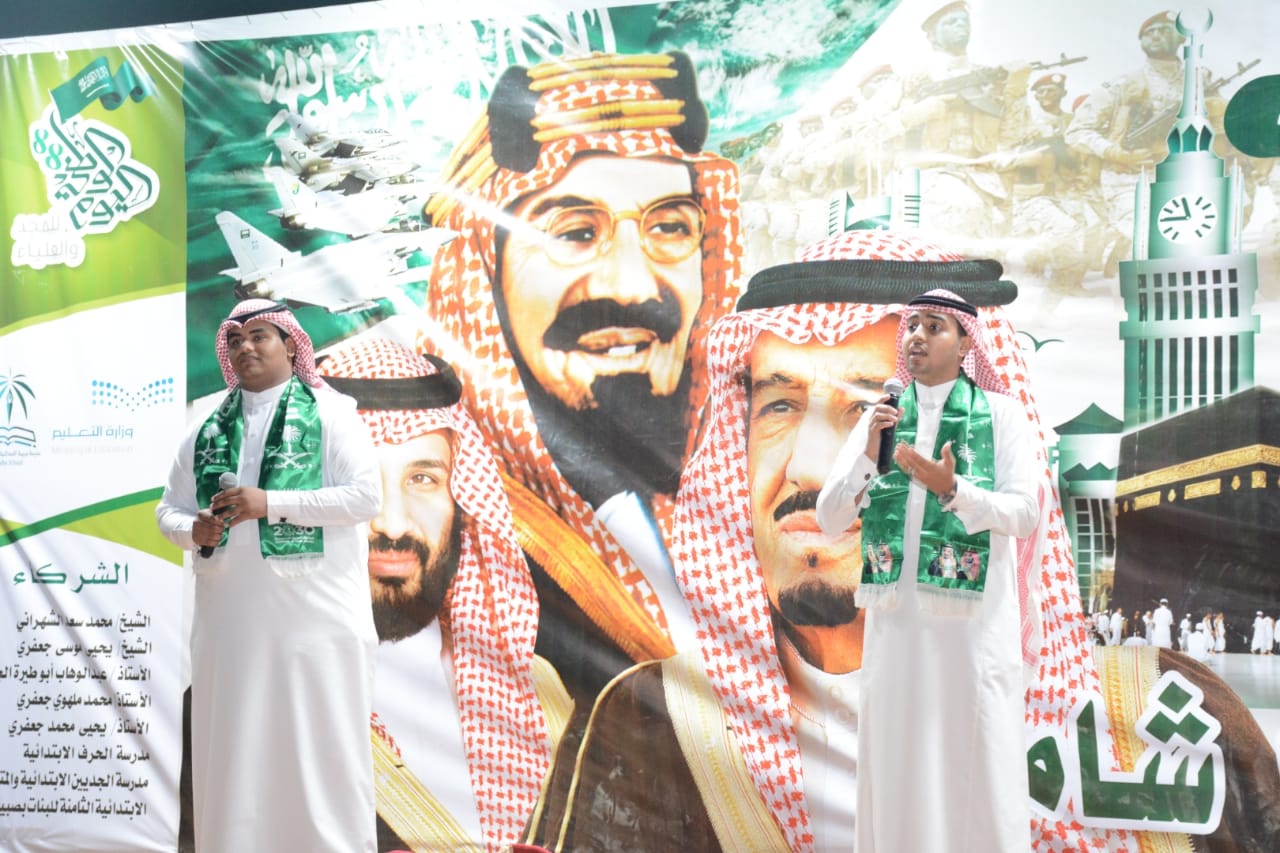 وبين قائد المدرسة الأستاذ حافظ جعفري أن إحتفالهم بهذه المناسبة هو ترسيخاً للدين والولاء للمليك والانتماء للوطن وتنمية للقيم الوطنية والنهضة الحضارية الشاملة التي تشهدها بلادنا أدام الله عزها وأمنها وأمانها إنطلاقاً من رؤية المملكة ٢٠٣٠ المتضمنة تنمية القيم الإيجابية لدى طلاب المدرسة والمشاركة المجتمعية لكافة الأطياف.