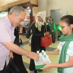 وبدأ البرنامج باستقبال المسافرين القادمين لمنطقة جازان وكابتن الطائرة وطاقم الرحلة ببوابة الطائرة في ساحة المطار من مدير المطار مبارك الشهراني ومدير جوازات المطار النقيب عبدالرحمن الأسمري، ومديري الإدارات العامة بالمطار ومنسوبيها، وفي صالة الوصول وقدمت لهم الأعلام والورود والقهوة العربية.