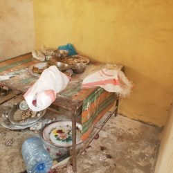 ويعاني المواطن وأسرته بسبب العيش بمنزل متهالك سقفه آيل للسقوط يتكون من مجموعة من الأحجار والصفيح، لا تصله المياه إلا عبر حاويات تُحمل من البئر على أكتاف الأسرة التي تسكنه؛ حيث لا يوجد به إلا جهاز تكييف واحد ومطبخه لا يؤثثه طعام سوى ملء كفين من الأرز قد لا تكفي لوجبة غداء.