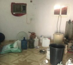 وفي العملية الثانية تمكن رجال الأمن بشرطة محافظة بيش من ضبط مصنع للخمور أثناء قيامهم بتمشيط الوادي عثر بداخله على جراكل مليئة بالعرق المسكر.