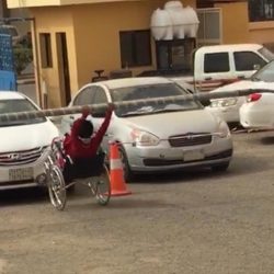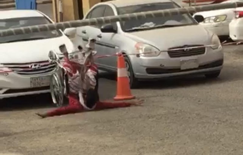 وظهر الشاب في مقطع فيديو متداول، وهو يعبث بكرسي متحرك لذوي الاحتياجات الخاصة، حيث بدا قادمًا من مسافة بعيدة منحدرة قبل أن يسقط على الأرض بعد ارتطامه بأحد الأعمدة.