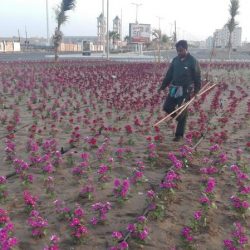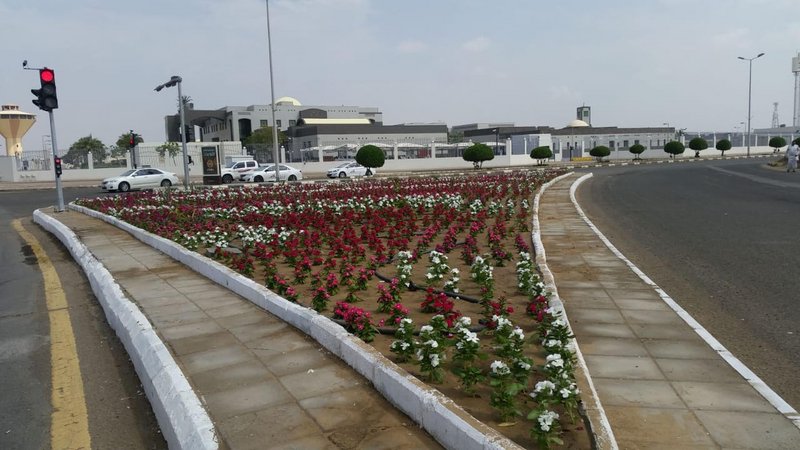 وسخرت الإمكانات والمعدات، والكوادر البشرية العاملة، حيث غرست 100 ألف زهرة، و2000 شجرة مزهرة، بالعمل على فترتين صباحية ومسائية لمتابعة الأعمال.