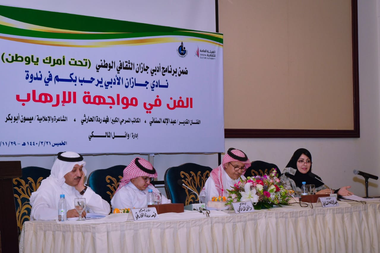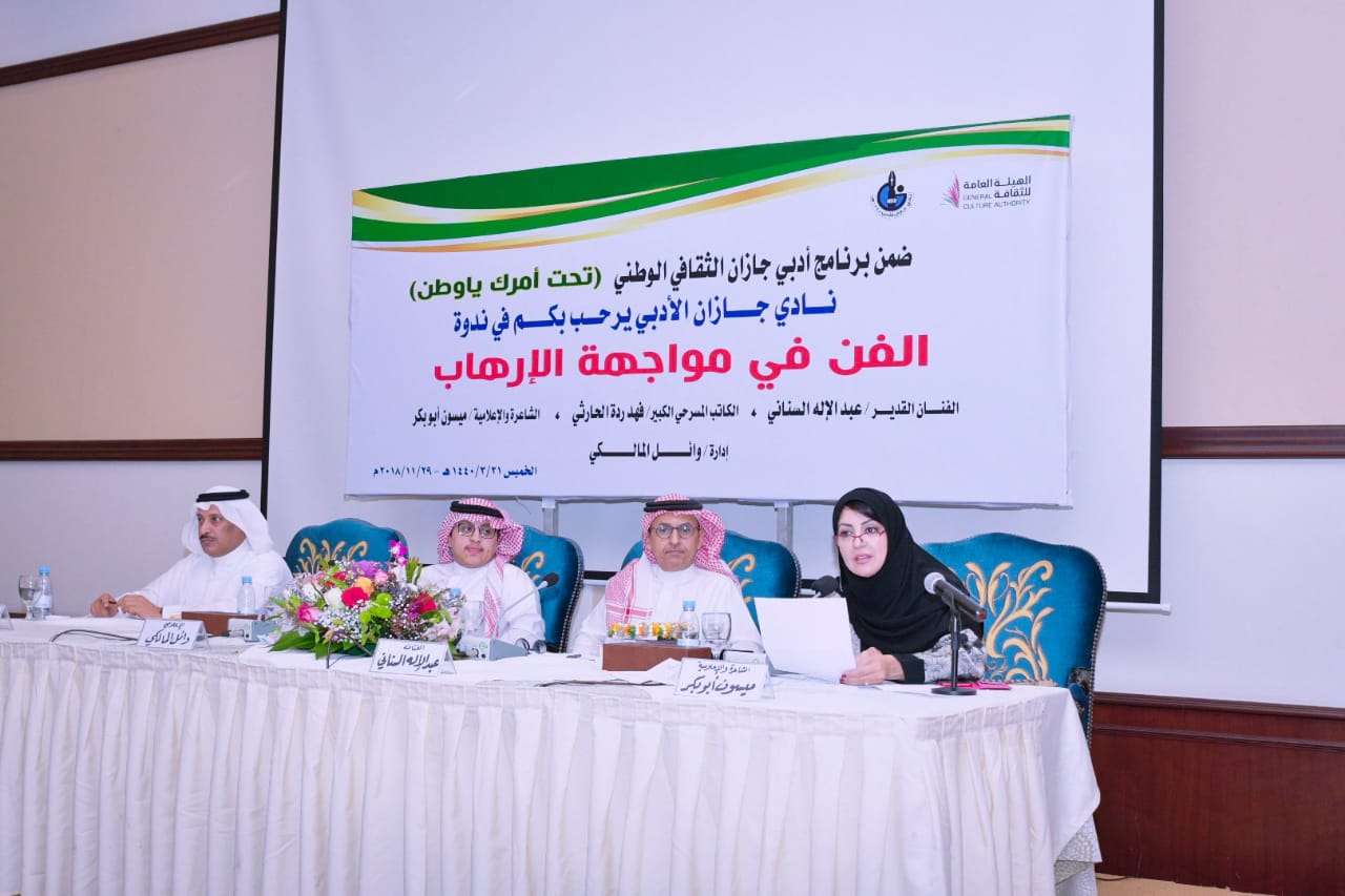 وأدار الندوة الأديب باقتدار الإعلامي والكاتب المعروف وائل المالكي بحضورمكثف مميز من المثقفين والإعلاميين، كما عقد قبلها وبعدها لقاء ثقافي حول دور الفن في مواجهة الإرهاب.
