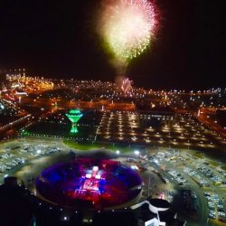 رسمت 10 آلاف قذيفة من الألعاب النارية لوحة جمالية في سماء مدينة جازان استوقف الزوار، لتعلن بدء فعاليات مهرجان جازان الشتوي؛ .