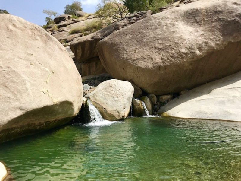 وادي “القميشة” بجازان يبهر الزوار بينابيعه وصخوره.. وهذه قصة أشجاره المعمرة