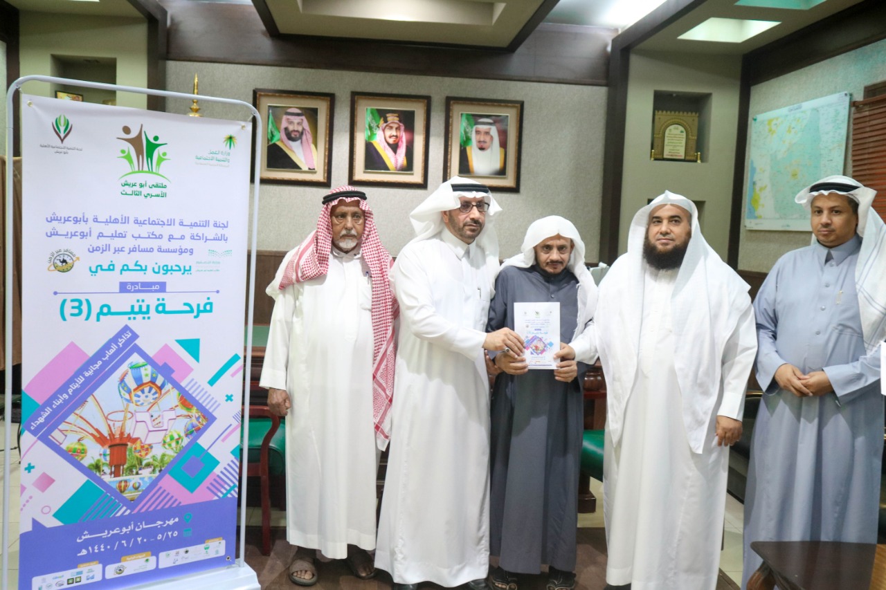 نفذت لجنة التنمية الاجتماعية بأبوعريش بالأمس مبادرة فرحة يتيم3 بالتعاون مع مكتب التعليم بالمحافظة وبحضور المحافظ محمد بن هادي الشمراني والتي تستهدف ألف طالب وطالبة من الأيتام وأبناء الشهداء، من خلال توزيع 5000 تذكرة مجانية عن طريق المرشدين والمرشدات في المدارس للإستفادة منها في مدينة الألعاب المقامة في المحافظة.