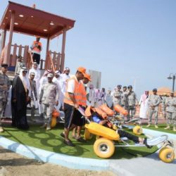 وأشار اللواء العتيبي إلى أن افتتاح الشاطئ ومسبح حرس الحدود لذوي الاحتياجات الخاصة يأتي ضمن المبادرات التي ينفذها حرس الحدود لخدمة ورعاية ذوي الاحتياجات الخاصة، ومنها منطقة السباحة المخصصة لذوي الاحتياجات في جزيرة المرجان موضحًا أن الشاطئ المخصص لذوي الاحتياجات الخاصة يخدم المهام الإنسانية إلى جانب عمليات البحث والإنقاذ ويمتاز بتوفر مسار خاص يتناسب مع حركة العربات المخصصة لهم، إضافة إلى تحديد المنطقة من الساحل ومن داخل منطقة السباحة، وتجهيزها بأحدث وسائل الأمن والسلامة، ووضع اللوحات الإرشادية والتوعوية، وبرج للمراقبة، سعيًا لتمكين هذه الشريحة من ممارسة هوايتها بالسباحة على الشاطئ بشكل طبيعي مع المجتمع.