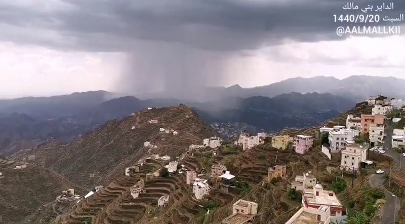 وثقّ المصور عبدالله المالكي، مقطعًا بديعًا لسحابة المطر، لحظة وصولها لجبال الداير بني مالك شرق جازان؛ حيث وثق لحظة انهمار المطر بغزارة والتي سالت على إثرها عدد من الأودية.