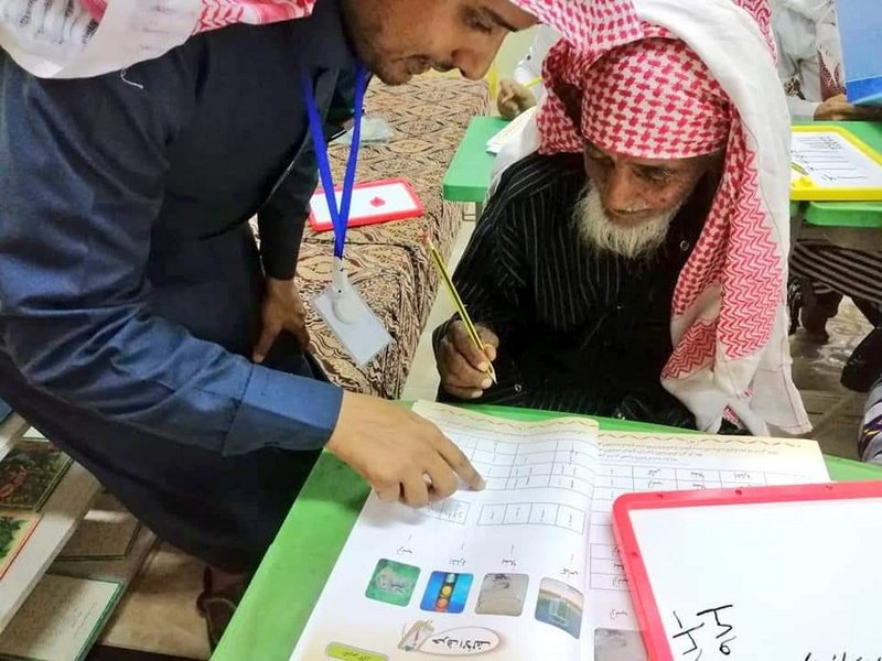 ويستفيد كبار السن من حملة التوعية ومحو الأمية، حيث يتسنّى للمشاركين في الحملة أن يتعلموا الأحرف والكلمات وأن يمسكوا المصحف الشريف ليقرأ كل منهم بفاتحة الكتاب وقصار السور قراءة سليمة فينطقها بأحرفها وحركاتها, فيما يجدون الفرصة من خلال الحملة لتعلم العديد من الأمور الشرعية في أسس العقيدة والتوحيد كما أن الحملة تقدم العديد من المسابقات والبرامج الترفيهية عبر قسم النشاط بالحملة.
