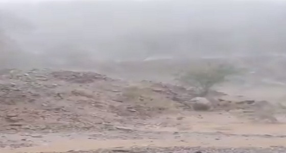 أظهر مقطع فيديو متداول اليوم الخميس، هطول أمطار رعدية مصحوبة بزخات من البرد على محافظة هروب بمنطقة جازان.