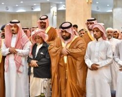 وقد أدى الصلاة مع سمو نائب أمير منطقة جازان , محافظة العيدابي عبدالله بن محمد الظافري , وعددا من المسؤولين ومشائخ وأهالي العيدابي.