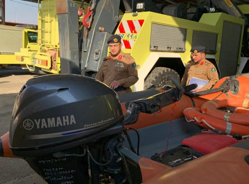 كما زار مدير الدفاع المدني العميد الشهري قائد قوة جيزان المكلف اللواء عبدالله الشهراني وقدم له ( رسالة السلامة لابطال الحد الجنوبي ) والمتمثله في اجراءات السلامة والوقاية من المخاطر .
