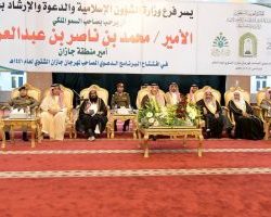 رعى صاحب السمو الملكي الأمير محمد بن ناصر بن عبدالعزيز أمير منطقة جازان مساء اليوم حفل انطلاق فعاليات البرامج الدعوية المصاحبة لمهرجان جازان الشتوي الـ ١٢ “جازان الفل .. مشتى الكل” للعام الحالي ١٤٤١هـ ، التي ينظمها فرع وزارة الشؤون الإسلامية والدعوة والإرشاد بالمنطقة, وذلك بجامع خادم الحرمين الشريفين بمدينة جيزان.