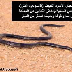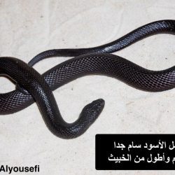 وأضاف: “الثعبان الأسود نوع يختلف عن ثعبان الصل الأسود ويفرق عنه بأنه أصغر حجماً منه وأقصر بينما الصل أضخم ورأسه أكبر من الخبيث مع التأكيد على أن سم الصل أيضاً شديد الخطورة”.