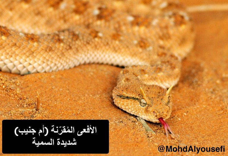 وتابع: “في بيئات المملكة أنواع أخرى سامّة جداً أشهرها الأفعى المُقرّنة (أم جنيب)، والكوبرا العربية، وأفعى السجاد الشرقي (الرقطاء)، والأفعى النّفّاثة (النوّامة)”.