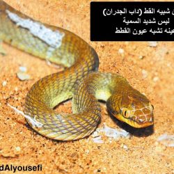 وواصل: “توجد أيضا ثعابين غير سامّة مثل الثعبان الدّفّان (الدّسّاس) والثعبان الأرقم والثعبان الصخري والثعبان الأنيق”، وزود “اليوسفي”؛ بصور التقطها بعدسته لأبرز هذه الأنواع، ومدى سمّيتها وخطورتها.