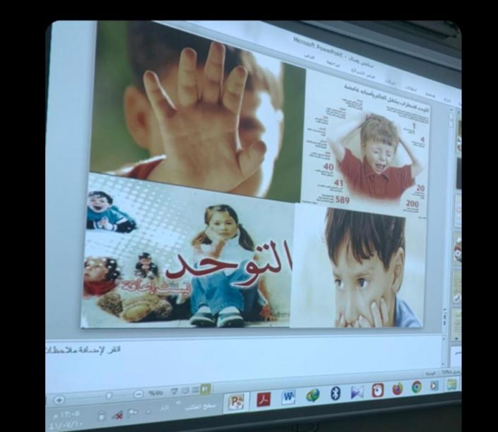 مبينه أن البرنامج تناول التعريف بمرض التوحد ماهيته وأنواعه والأعراض المبكرة وأسبابه وطرق العلاج .