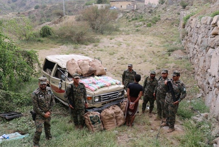 دوريات الأفواج الأمنية بمنطقة جازان تقبض على أحد المروجين وبحوزته (92) كيلوغراماً من الحشيش المخدر