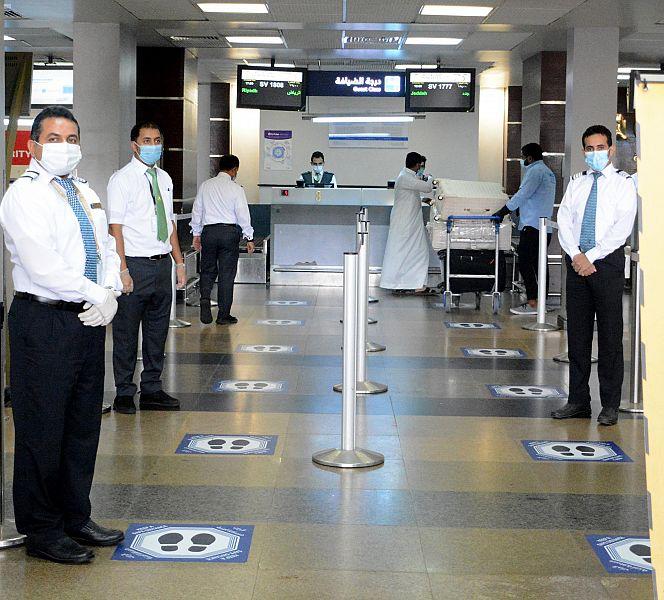 وتنفذ الإدارات العاملة بالمطار، جميع الإجراءات الوقائية المتخذة في مطارات المملكة عند الوصول، من خلال الالتزام بالنزول التدريجي للركاب من الطائرة، واستخدام 50% فقط من الطاقة التشغيلية للحافلات، وفحص جميع الركاب عبر الأجهزة الطبية المتعمدة، والالتزام بلبس الكمامات القماشية والطبية، مع توفير أجهزة التطهير عند أول نقطة دخول للصالة، وتوفير مناطق للعزل الصحي، بالإضافة إلى الوقوف على الملصقات الإرشادية التي توضح مكان وقوف كل مسافر.