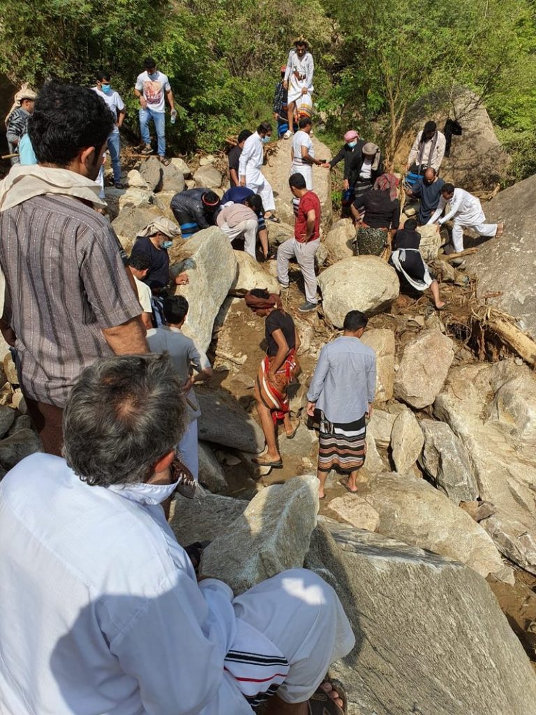 علمت مصادر أن الجهات الرسمية بمحافظة العارضة- شرقي جازان، بالتعاون مع مواطنين، يقومون حالياً بمحاولة استخراج مركبة عثر عليها في أحد الأودية بالقطاع الجبلي بعد أن جرفتها السيول وغطتها الصخور.