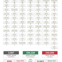 فيما بلغ عدد الوفيات (5087) حالة وذلك بإضافة (19) حالة وفاة جديدة “يرحمهم الله جميعاً”، لافتةً إلى أنه تم إجراء (49495) فحصاً مخبرياً جديداً.