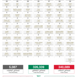 ويوضح الجدول المرفق توزيع الحالات الجديدة في مدن المملكة، وكذلك أعداد الإصابة والتعافي والوفيات عالمياً.