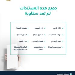 أعلنت الجمارك السعودية، أنها قلّصت المستندات اللازمة للاستيراد إلى مستندين فقط (الفاتورة، بوليصة الشحن)، بعد أن كانت تتطلب تلك العملية 12 مستندًا في السابق.