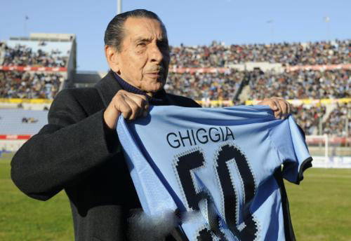 ويحضر جيجيا فعاليات بطولة كأس العالم في البرازيل حيث يشاهد مباريات البطولة ويساند منتخب أوروجواي أملا في تكرار إنجاز مماثل لما حققه في 1950 عندما خطف الفريق اللقب من بين أنياب المنتخب البرازيلي عندما تغلب عليه 2-1 باستاد “ماراكانا” الأسطوري في ريو دي جانيرو وذلك في المباراة الختامية للبطولة والتي كان المنتخب البرازيلي بحاجة إلى التعادل فيها فقط ليتوج بلقبه العالمي الأول.