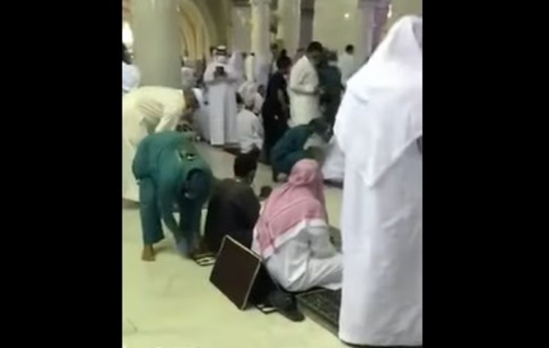 أظهر مقطع فيديو من داخل المسجد الحرام إزالة علامات التباعد التي تم وضعها بداية جائحة كورونا.