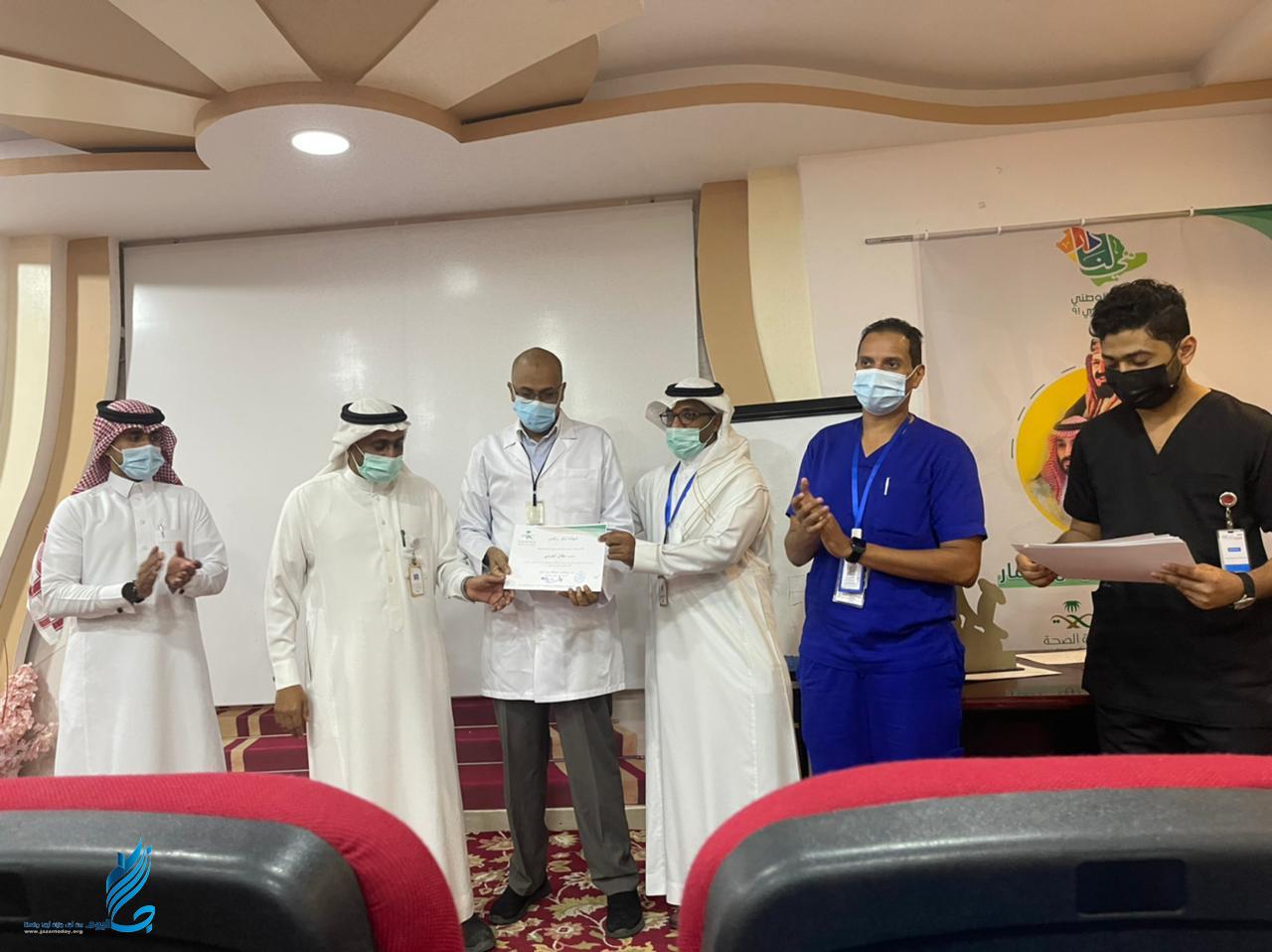 وفي خـــتام التدشين كرم مدير المستشفى ومديرة إدارة مكافحة العدوى بالشؤون الصحية بالمنطقة المتميزين بالأقسام من ناحية مكافحة العدوى وتطبيق المعايير. حضر الفعالية والتكريم المدير الطبي د/ ذهبيه ورئيس قسم مكافحة العدوى حسن أبو الزوايد ورئيس قسم الصحة العامة وسيم زكري ورئيس صحة البيئة عبده عتين ومدير إدارة التمريض الأستاذ حسين العسيري .