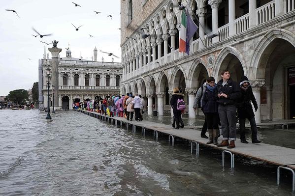 وبلغ منسوب المياه 130 سم، وتتوقع هيئة الأرصاد الجوية أن يصل خلال الساعات القادمة لـ140 سم؛ ما يعني أن أكثر من نصف “فينيسيا” سيكون مغموراً بالمياه، ويعتقد أن هذا الوضع لن يتغير حتى غد السبت.