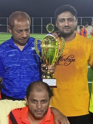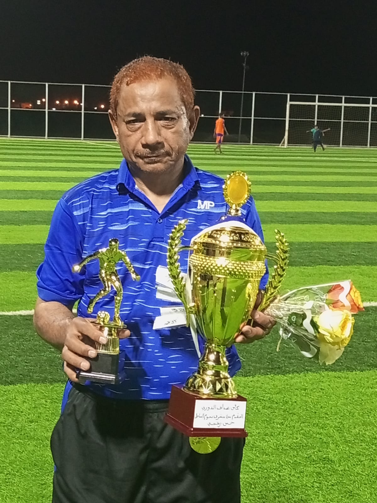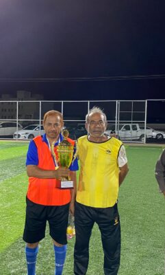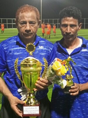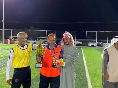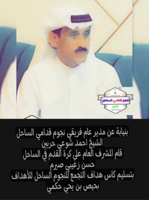 نيابة عن مدير عام فريق نجوم قدامى الساحل الغربي الشيخ/احمد شوعي حربين قام الكابتن/حسن زغيبي بتسليم الكأس لهداف القريق منذ تأسيسه الكابتن الاسطورة/بحيص يحيى حكمي وذلك بين شوطي الكرنفال الذي جمع بين فريقي نجوم قدامى الساحل. شاكرين للمدير العام والمشرف على الفريق هذا الاهتمام الغير مستغرب عليهما من اجل تشجيع الفريق على الانضباط والمحافظة على التلاقي لما فيه من اواصر المحبة وتعزيز تطور الفريق ليصل الى ارقى المستويات للمشاركات القادمة.ونبارك للكابتن /،بحيص حكمي هذا الانجاز
