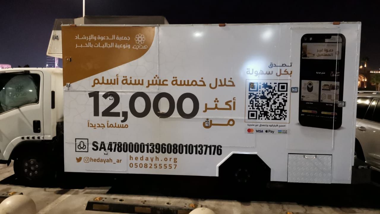 وأوضح الشهري انه استفادة 600 ألف شخص من 3 مصليات لجمعية “هداية” منهم 108 آلاف خلال هذا العام ، حيث يستفيد من المصليات المتنقلة مايقارب 1800 فرد أسبوعيا ، مبينا أن هناك مصلى ثابت ومصليين متنقلين وهي عبارة عن سيارات نقل كبيرة مجهزة بأجهزة صوتيات وشاشة دعوية وفرش ومغاسل للوضوء ، في الوقت الذي دعا أفراد المجتمع من مواطنين ومقيمين للمشاركة بالحملة الخيرية لدعم مشروع “المصلى المتنقل” من خلال التبرع عبر المنصة الوطنية للتبرعات .