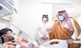 سمو الأمير محمد بن عبدالعزيز يطمئن على المصابين جراء سقوط مقذوف عسكري معاد بمحافظة صامطة