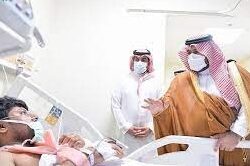 نائب أمير جازان يطمئن على المصابين جراء سقوط مقذوف عسكري معاد بصامطة
