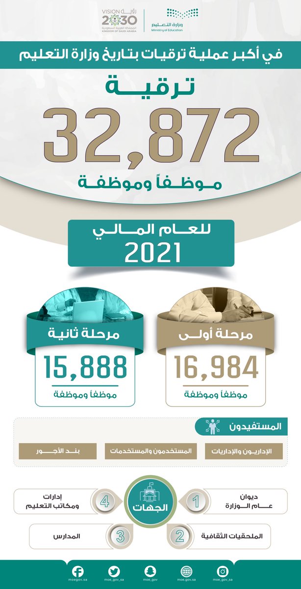آخر الأخبار > تعلن وزارة التعليم عن اكبر عملية ترقية