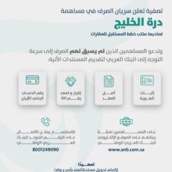 وقالت “تصفية” عبر حسابها على موقع “تويتر”: “‏سريان الصرف في مساهمة درة الخليج في محافظة الخبر، وعلى المساهمين الذين لم يتقدموا بمستنداتهم سرعة تقديم مستنداتهم للبنك العربي”.